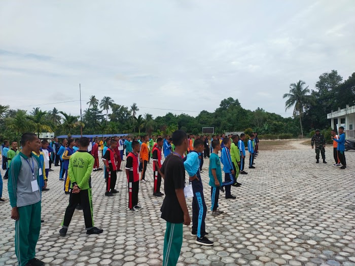 Babinsa Tanjung Berlian Kota Koramil 03/Kundur Serka JF. Simanungkalit melaksanakan kegiatan latihan PBB di SMK N Kundur Utara.