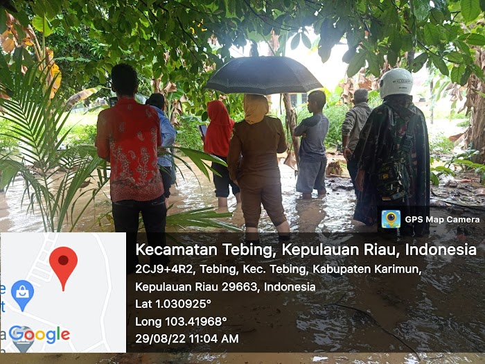 Babinsa Tebing Koramil 04/Tebing Sertu Hadi Gunawan melaksanakan kegiatan pengecekan rumah warga yang mengalami banjir di Kel. Tebing Kec. Tebing.