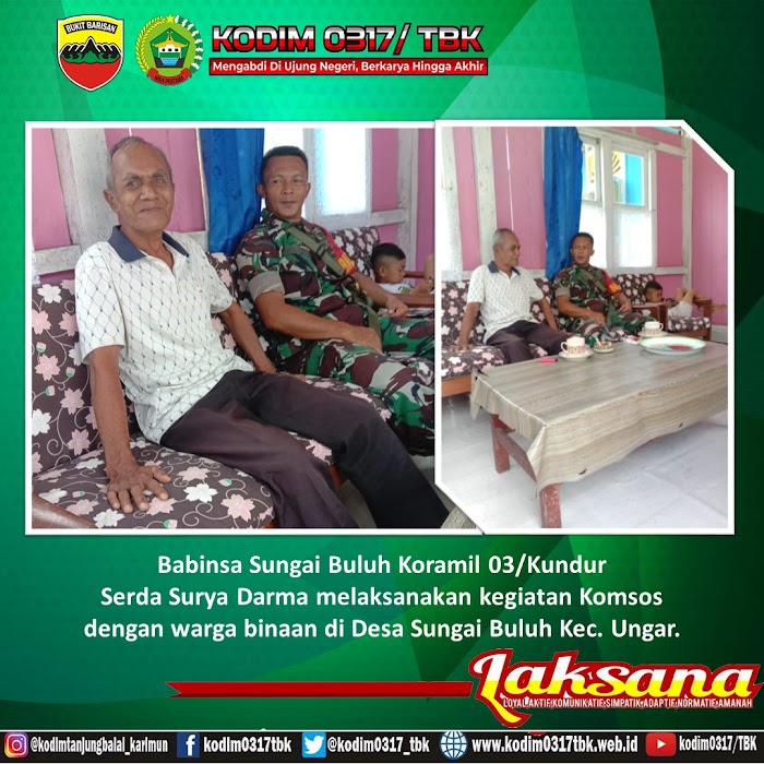 Babinsa Sungai Buluh Koramil 03/Kundur Serda Surya Darma melaksanakan kegiatan Komsos dengan warga binaan di Desa Sungai Buluh Kec. Ungar